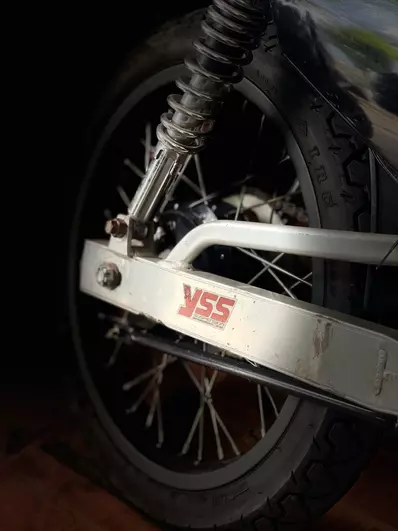 Spoke wheels berukuran 18 inch dipadukan dengan dual shockbreaker berwarna chrome dan swing arm berwarna silver.